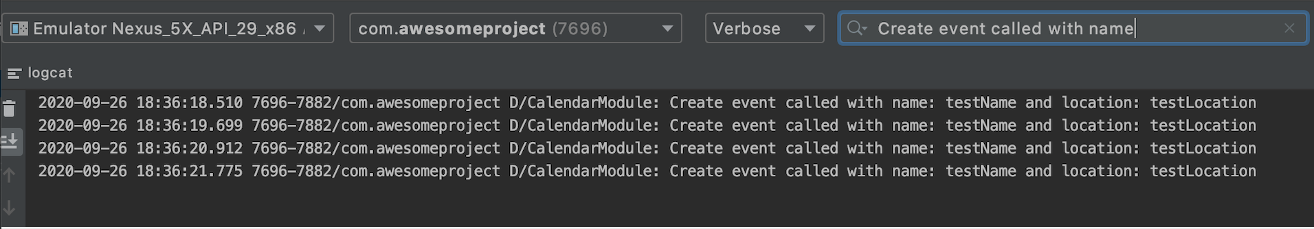 Once you finish implementing the native module and hook it up in JavaScript, you can follow these steps to view the logs from your app.